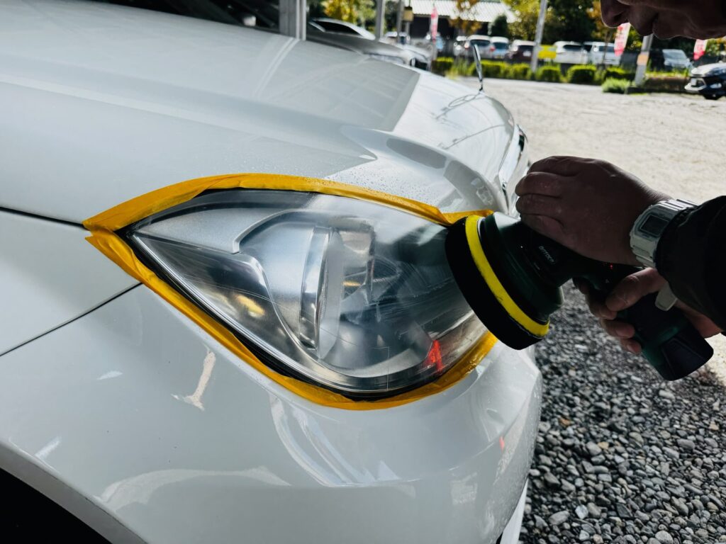 微粒子コンパウンドで擦り、ヘッドライトの簡単研磨に、酸の溶液を筆でチョンチョン。