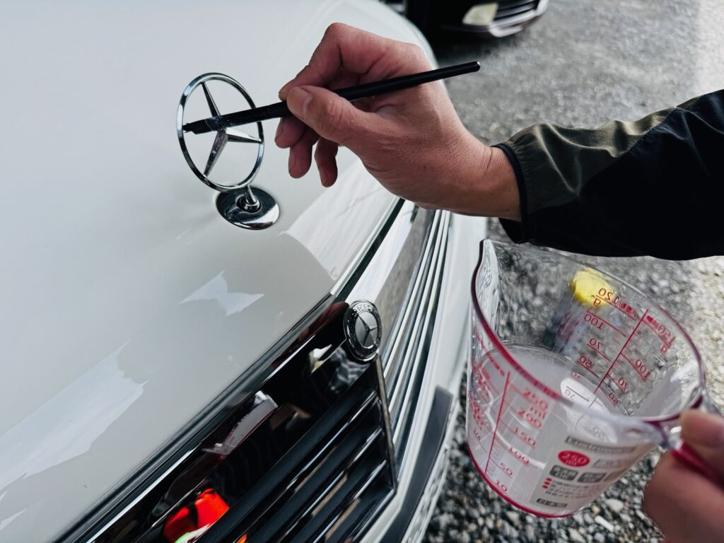 普段はワックス成分の強い洗浄液を使って仕上げていますが、もちろんコーティングの方が長く保つのでおススメですね。