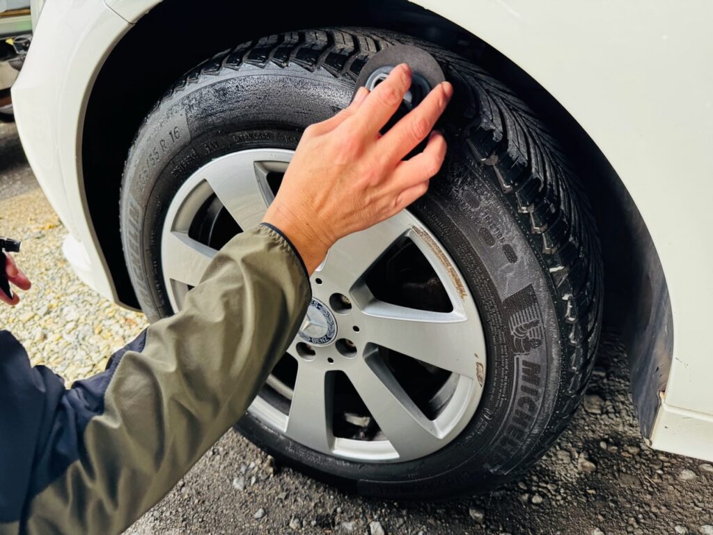 そしていよいよコーティングの塗布が完了し、最後にタイヤワックスを塗り上げて完了です。