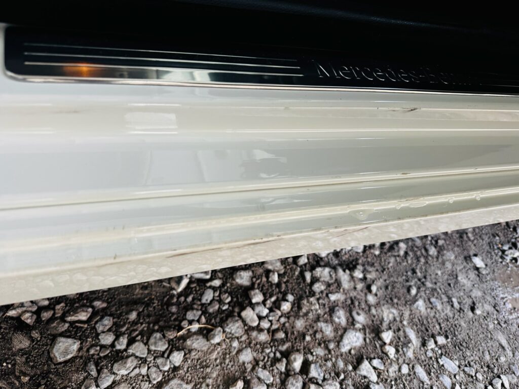 飛び石と思われるとても小さな傷というか凹みがあったのですが、大抵の国産車なら下地が見えるほどの凹みなのに、このCクラスは塗料しか見えてないのです。