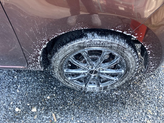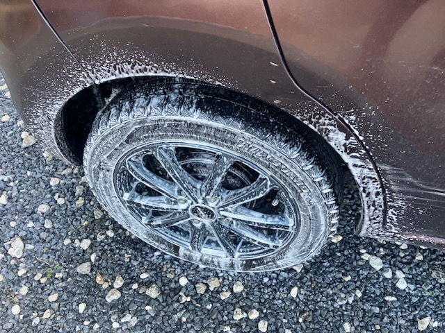 純水を使い、タイヤホイールもしっかり汚れを落とし、車に優しい手洗いのワックス洗車で、この価格です。