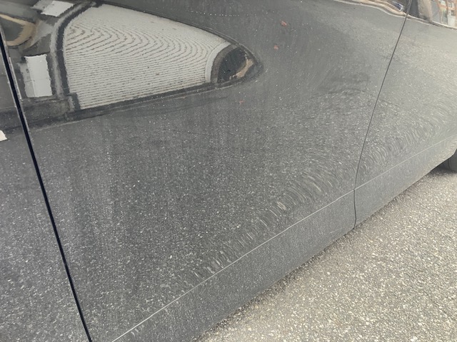 そしてこのクルマも例に漏れず、薄皮みたいに貼りついた白いベールの汚れが、202ブラックを包んでいました。