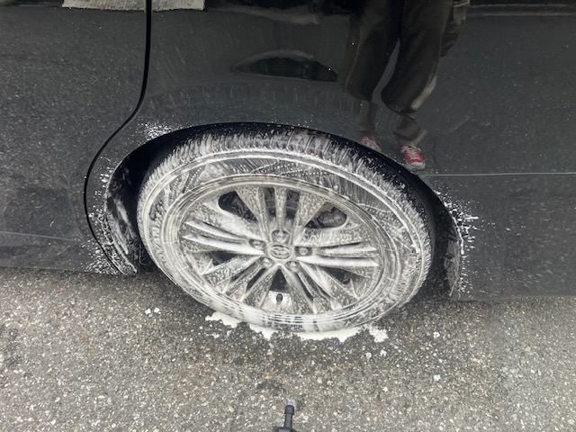 いつものようにタイヤとホイールをクリーナー+泡にて洗浄。