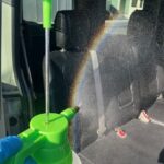専用クリーナー(強めの洗剤)で吹き付け、汚れを浮かせてから中性の泡にて一度包み込んで汚れに反応させます。