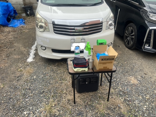 準備するものは、①マスキング材 ②研磨用資材 ③洗浄道具(乾燥用送風機含む) ④溶剤 ⑤蒸気用機材 ⑥電源