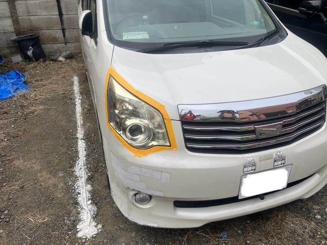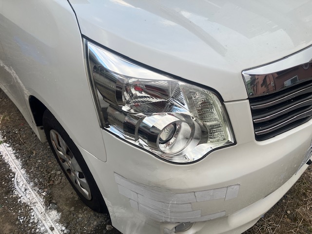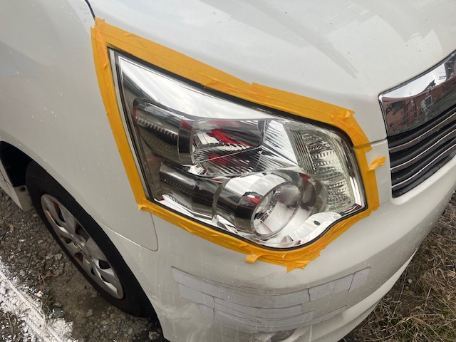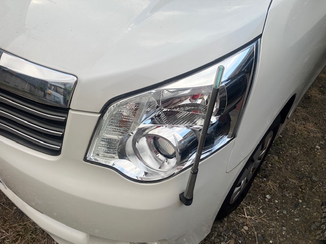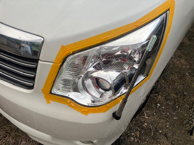 このクルマは、駐車場に西日が当たるために右側のヘッドライトだけが黄変していました。