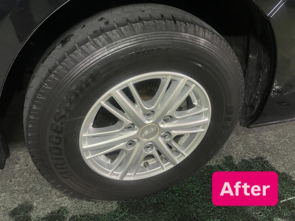 凹みのカドまで汚れ落としをしていることと、ワックス効果のある洗浄液を使っていることでスッキリ感は倍増です。