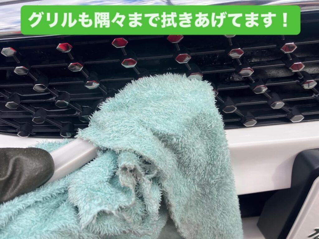 エンブレムや、引っ込んだリフレクターと呼ばれる反射板にも、上下左右からディテーリングブラシを使用しますので洗車後に残っているということもありません。